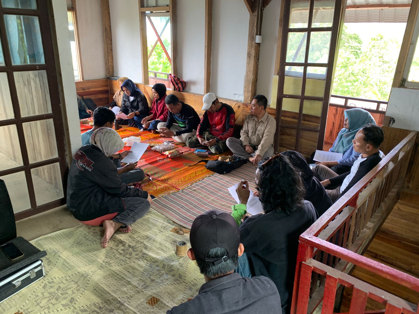 Setelah menikmati pertemuan dengan berkeliling kebun, menyeduh kopi, dan bercakap-cakap, kami menikmati makan siang bersama-sama. Makan siang kali ini dibuat oleh Ibu Sofni, salah seorang anggota Kelompok Wanita Tani Nangka. Setelah makan dan shalat kami berkumpul di lantai dua sekretariat Bukik Gompong Sejahtera untuk memulai diskusi. Di hadapan kami sudah tersedia kopi dan cemilan sehat seperti asparagus, labu siam mini, dan kacang yang di petik dari perkebunan sini. Hari ini diskusi dipantik oleh Buya Khairani. Seorang tokoh masyarakat, tokoh agama, dan tokoh adat yang juga sering ikut berkumpul di Komunitas Gubuak Kopi. Kali ini Buya Khairani akan berbagi dengan teman “Filosofi Pertanian Minangkabau”. Judul yang ambisius memang, tapi pintu yang menarik untuk melihat bagaimana posisi pertanian di masyarakat Minangkabau.